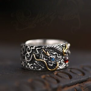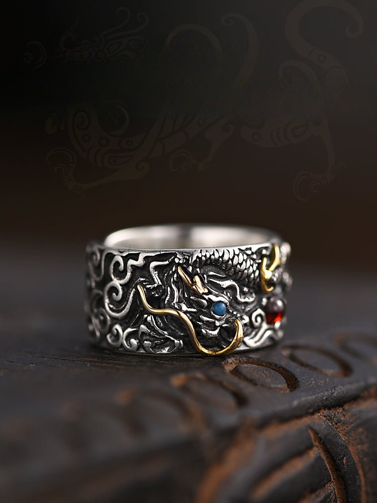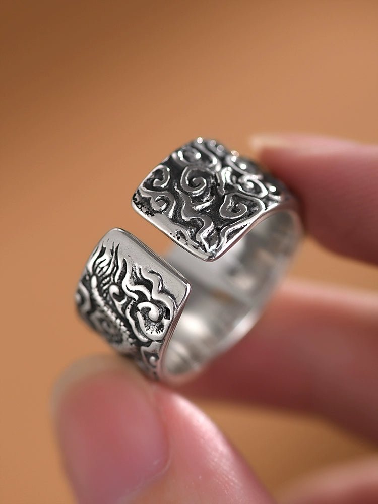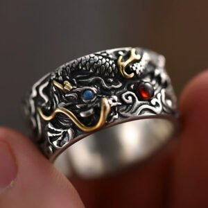 🐲【Never Fade】The international standard S925 silver material makes you not afraid of allergies and fading.The S925 mens rings does not rust and fade, so DO NOT worry the mens dragon ring turns your finger green!!!