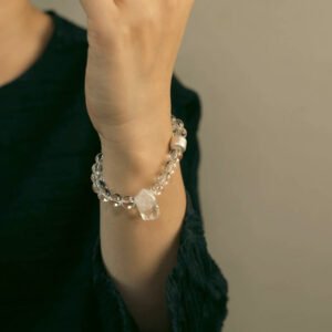 This minimalist clear quartz bracelet features natural, polished crystals known for their timeless beauty and gentle energy. Designed in a single strand style, it’s perfect for daily wear—whether worn solo or paired as a symbol of love and harmony between couples.