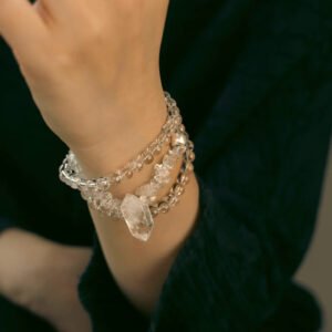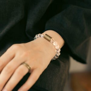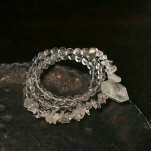 This minimalist clear quartz bracelet features natural, polished crystals known for their timeless beauty and gentle energy. Designed in a single strand style, it’s perfect for daily wear—whether worn solo or paired as a symbol of love and harmony between couples.