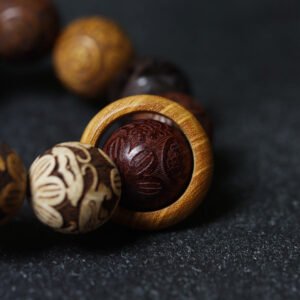 Don’t let your mind wander — anchor it in the present with the Hand-Carved Wooden Chinese Zodiac Mala Beads Bracelet.