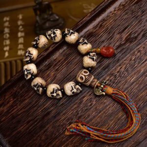 Symbolism: In Tibetan Buddhism, skulls are potent symbols of life’s impermanence and the cycle of rebirth. Wearing this bracelet is a spiritual reminder to live with mindfulness, courage, and presence.