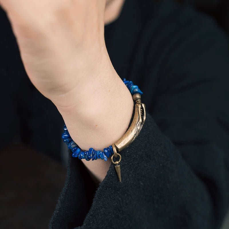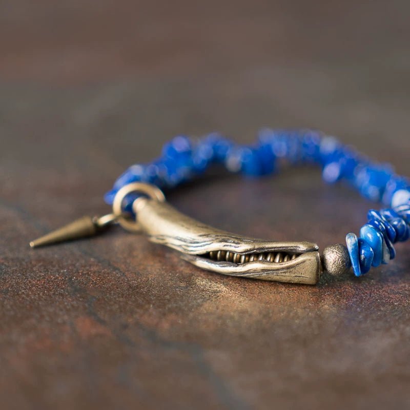 Brass adds not only a touch of antique character but also grounding energy to the bracelet. In spiritual practice, brass is thought to amplify intention and balance surrounding energies — a perfect pairing with lapis lazuli’s mental focus.