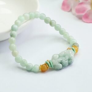 Invite abundance and protection with the Jade Pixiu Bead Bracelet.