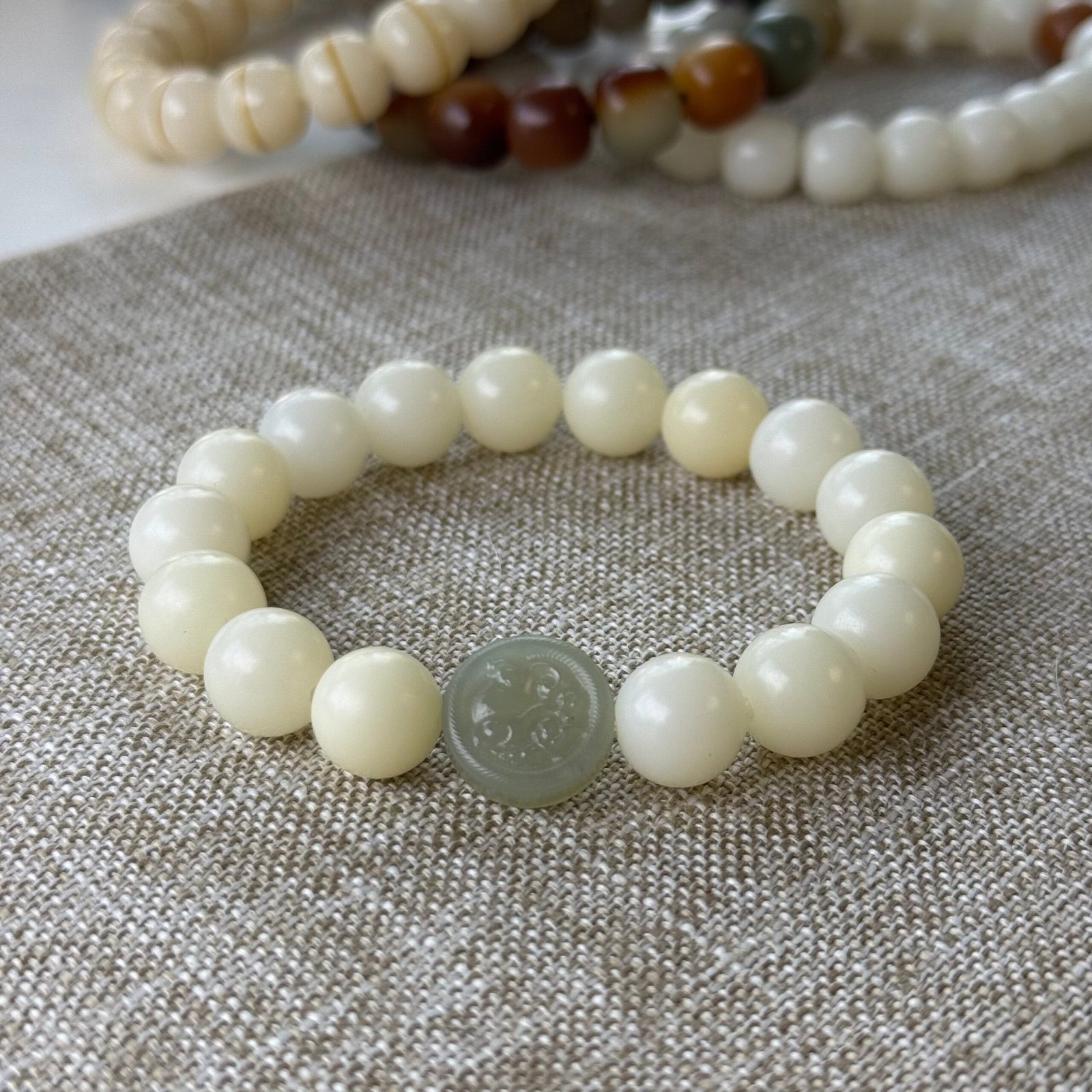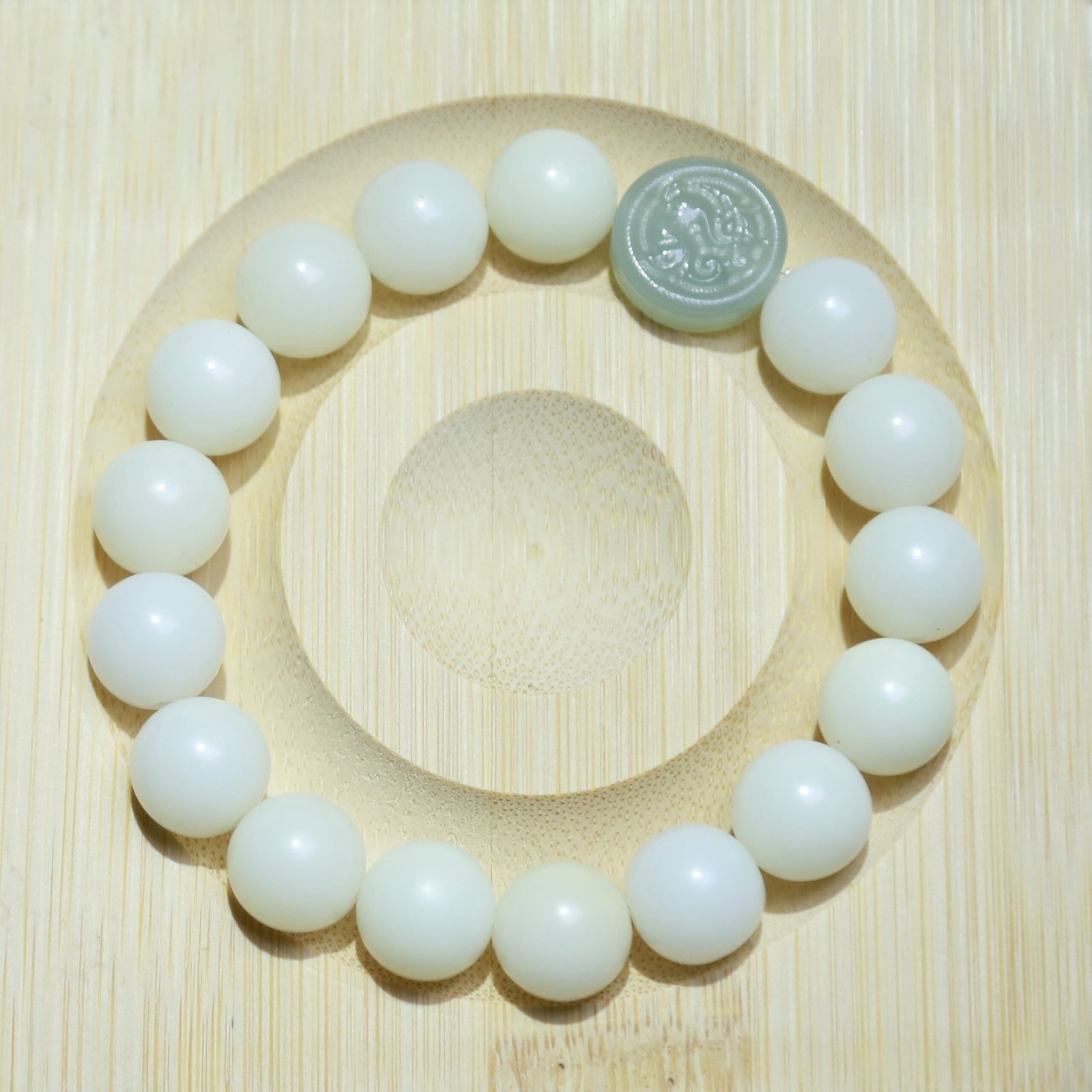 • Bead Size: White Bodhi Beads – ~11mm; Kirin Jade Bead – ~14mm