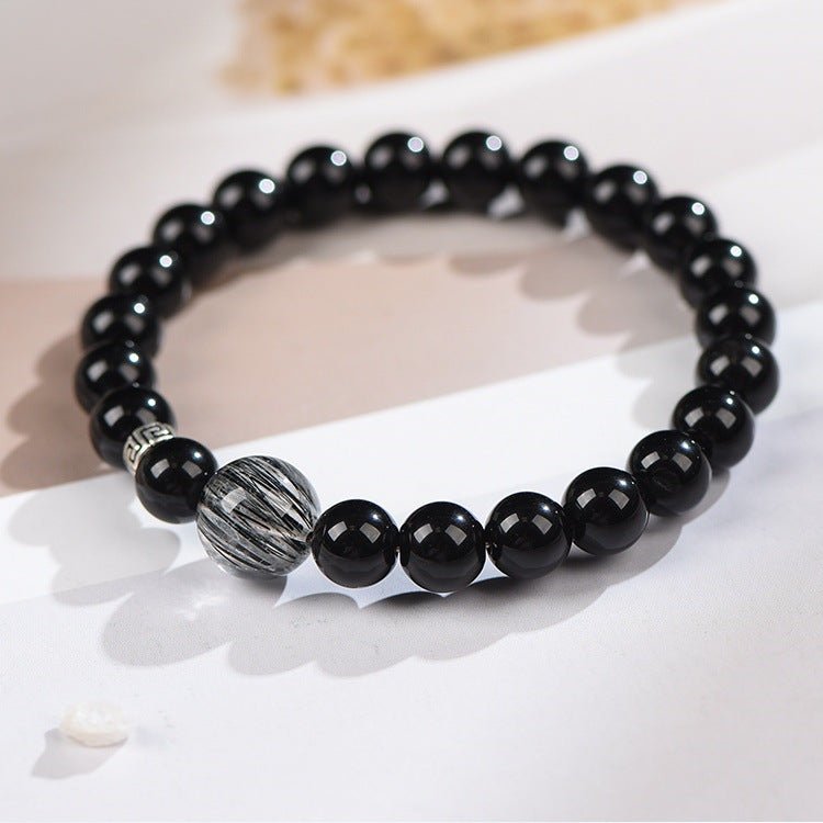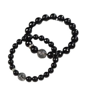 This elegant handmade bracelet features a striking combination of obsidian beads, enhanced by the unique texture of black hair crystal and accented with durable 925 sterling silver. Perfect for couples looking to express their connection with a stylish and meaningful piece of jewelry.