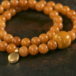 Bodhi Beads: Harvested from the sacred Bodhi tree, these golden-brown seeds represent mindfulness, spiritual growth, and clarity. Their rich, natural hue evokes a sense of calm and connection to the earth.