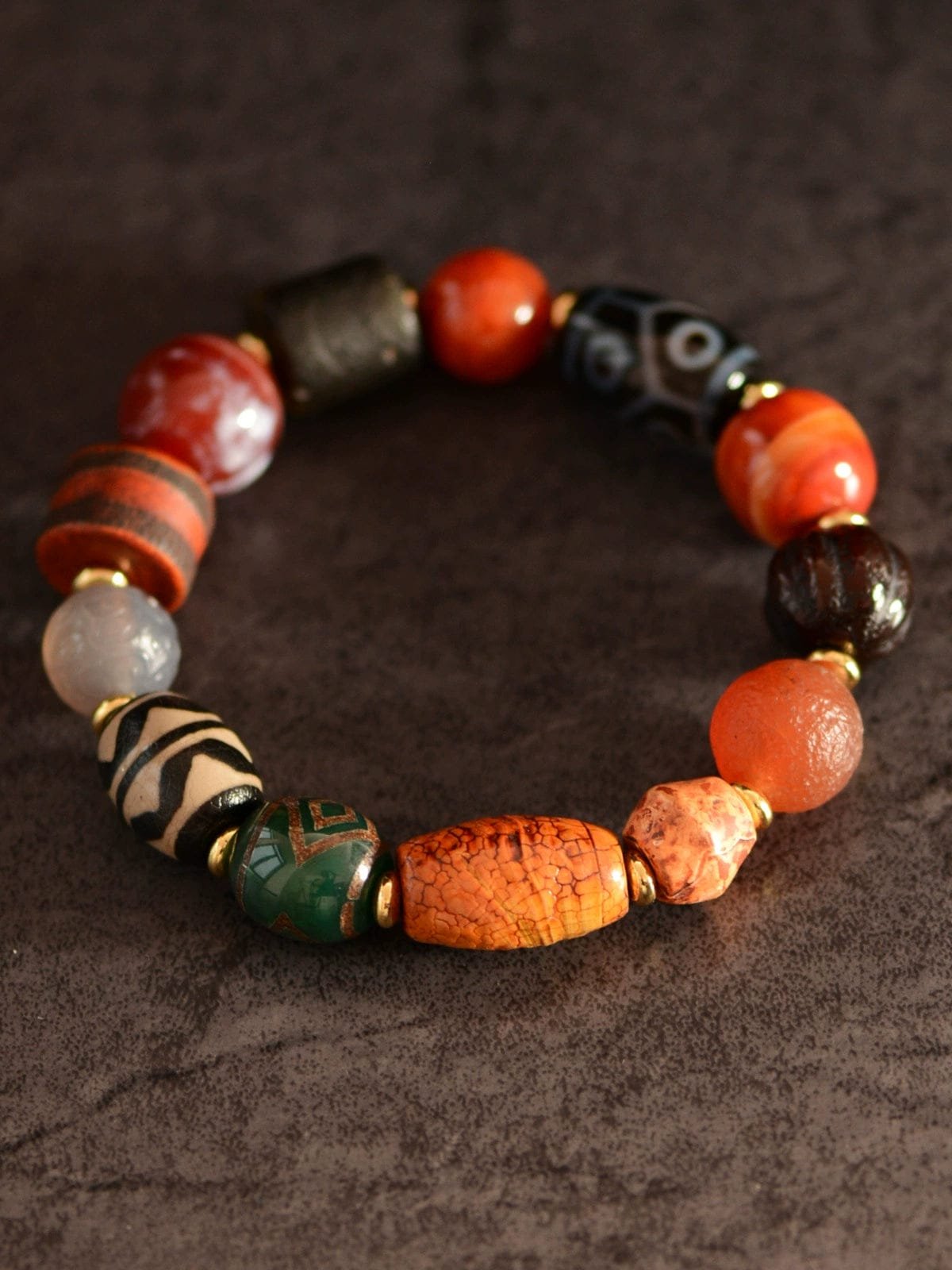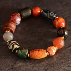 The Old Dzi Beads Charm Bracelet is a stunning piece of jewelry made of high-quality dzi beads.