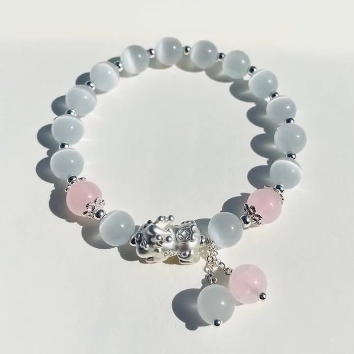 Crafted with precision, the Pixiu charm serves as a reminder of the importance of protection and the pursuit of good fortune. The cat’s eye crystal beads are believed to promote mental clarity, focus, and emotional healing, making this bracelet a perfect companion for those seeking balance, strength, and abundance in their life.