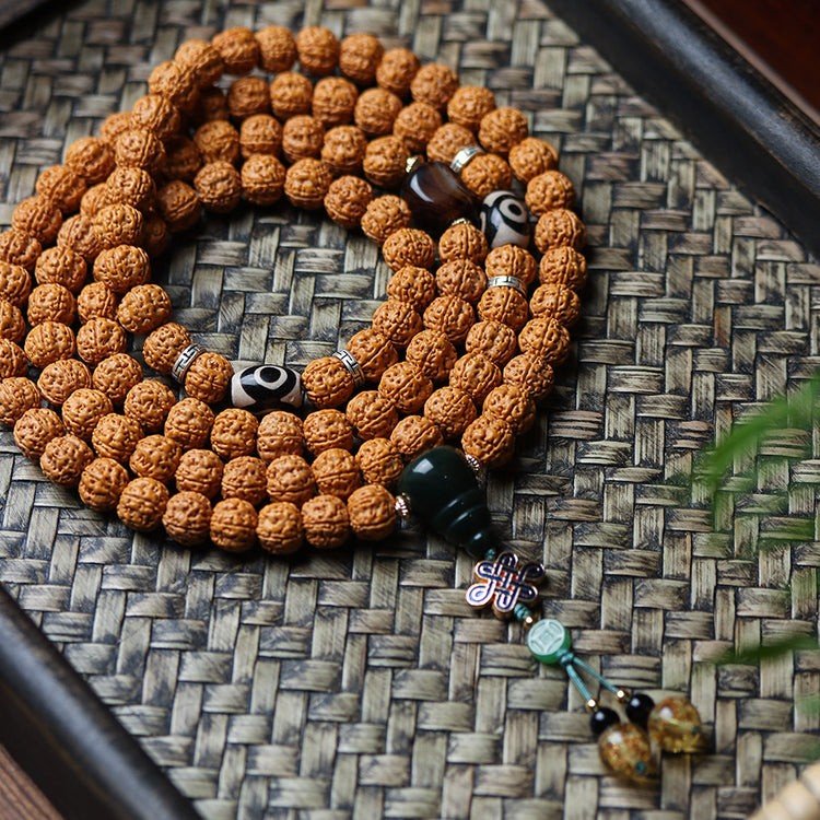 In Tibetan and Buddhist traditions, Rudraksha symbolizes unshakable strength, protection, and spiritual awakening. The “dragon vein” patterns represent the powerful flow of energy and wisdom, guiding the wearer toward clarity and intention in every moment. As you touch and turn each bead during your practice, it becomes a quiet companion, supporting your journey inward and aligning your energy with timeless peace.