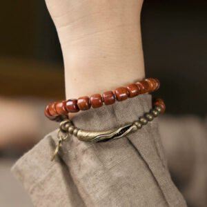 This handcrafted double-wrap long bracelet combines natural yak bone beads with vintage brass accents, blending Tibetan cultural symbolism with rustic charm. In Tibetan tradition, yak bone symbolizes impermanence and compassion, reminding us to live with humility, mindfulness, and reverence for life.