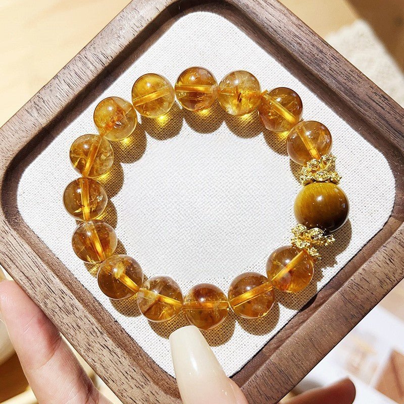 With its shimmering golden hues and vibrant yellow accents, the Tiger Eye Citrine Wealth Bracelet adds sophistication to any outfit while guiding you toward lasting success and fortune.