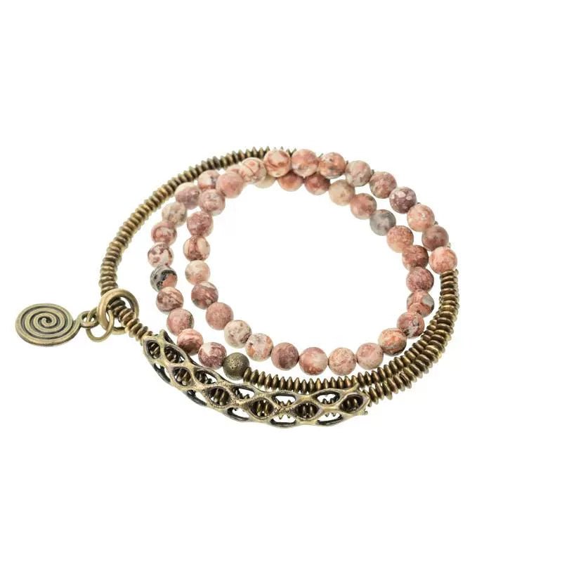 📿 Material: Natural flower red jasper, antique-finish brass spacers