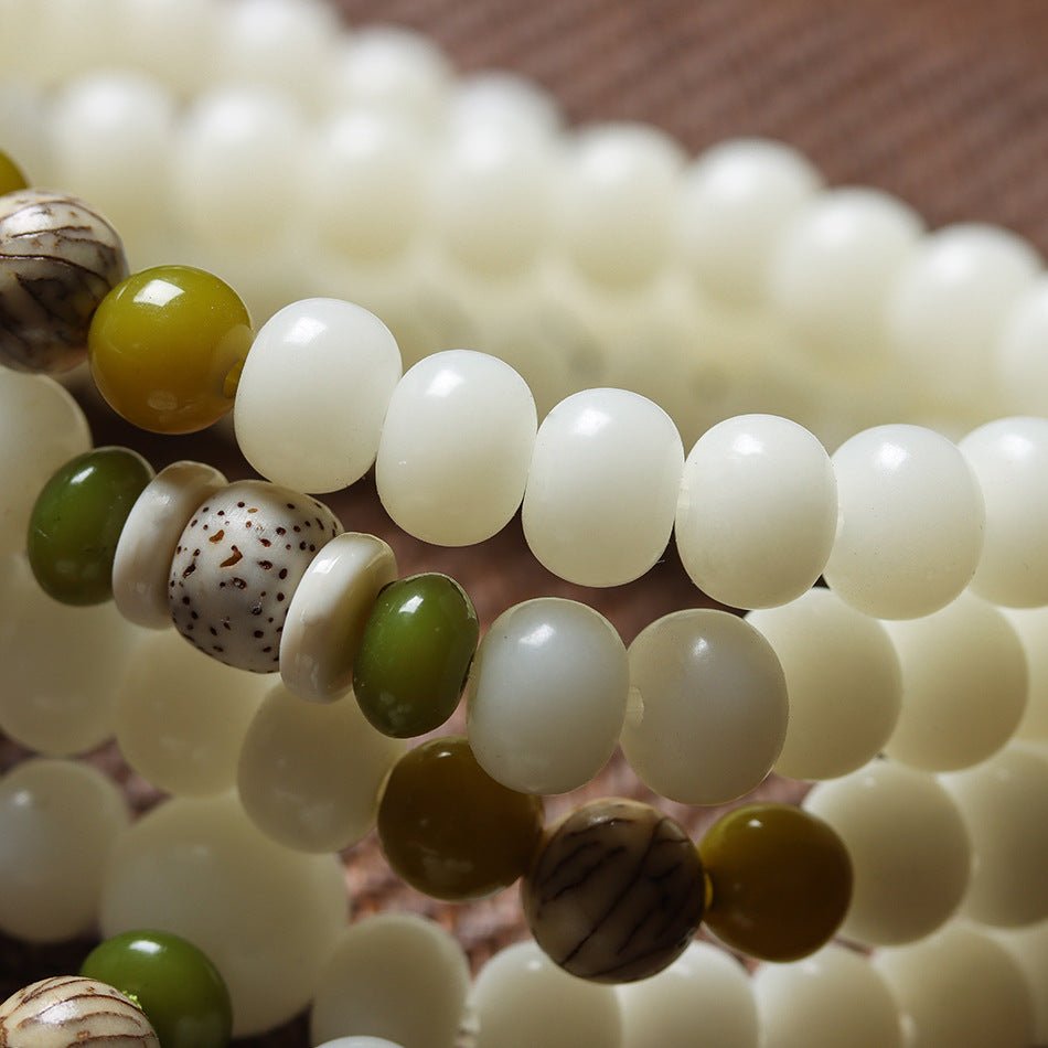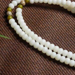 White Jade Bodhi Beads (7×9mm): Beloved for their association with purity, protection, and calm clarity. Rooted in Buddhist tradition, they represent awakening and balance—helping center the mind in meditation and in life.