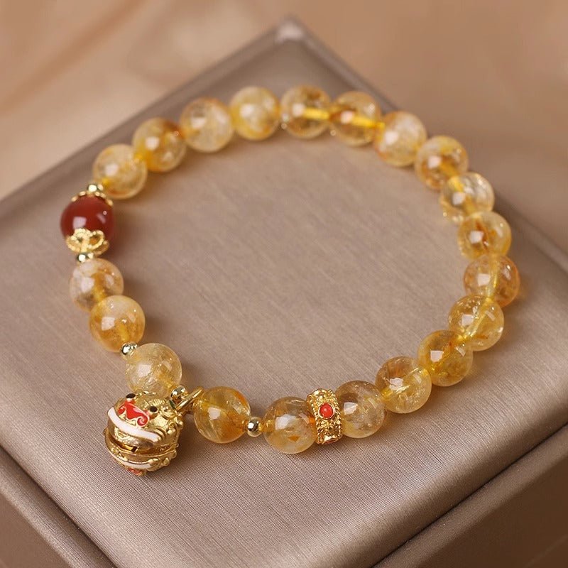 Crafted with gleaming citrine beads and a detailed Pixiu pendant, this bracelet combines beauty and symbolism to help you manifest fortune and ward off misfortune.